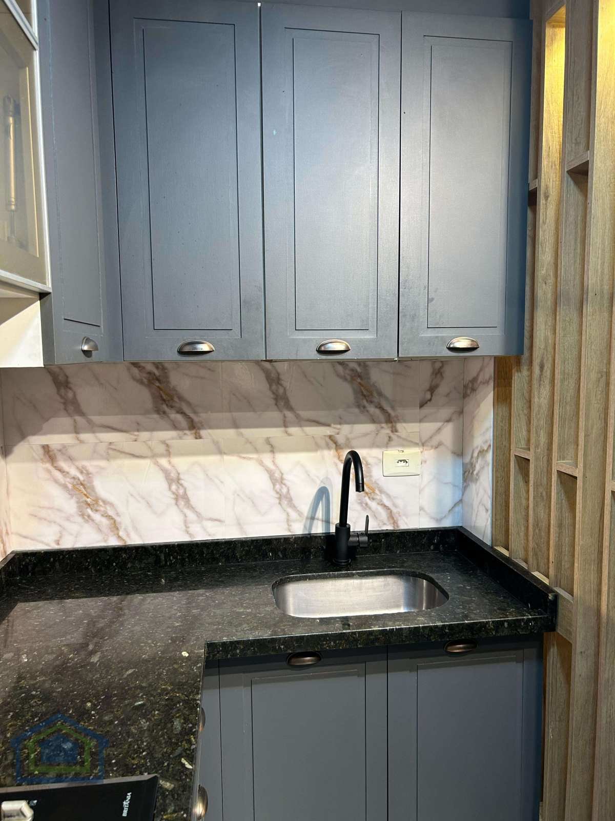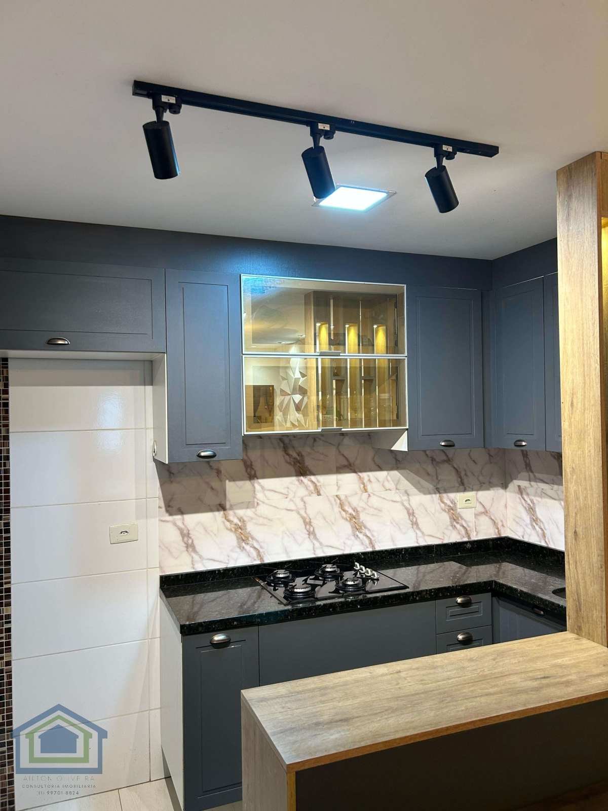 Cozinha com azulejo até o teto e planejada.