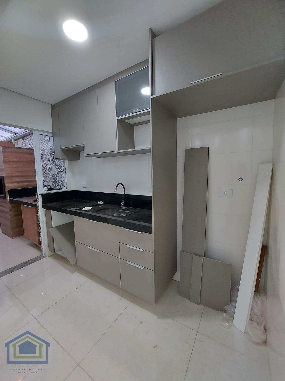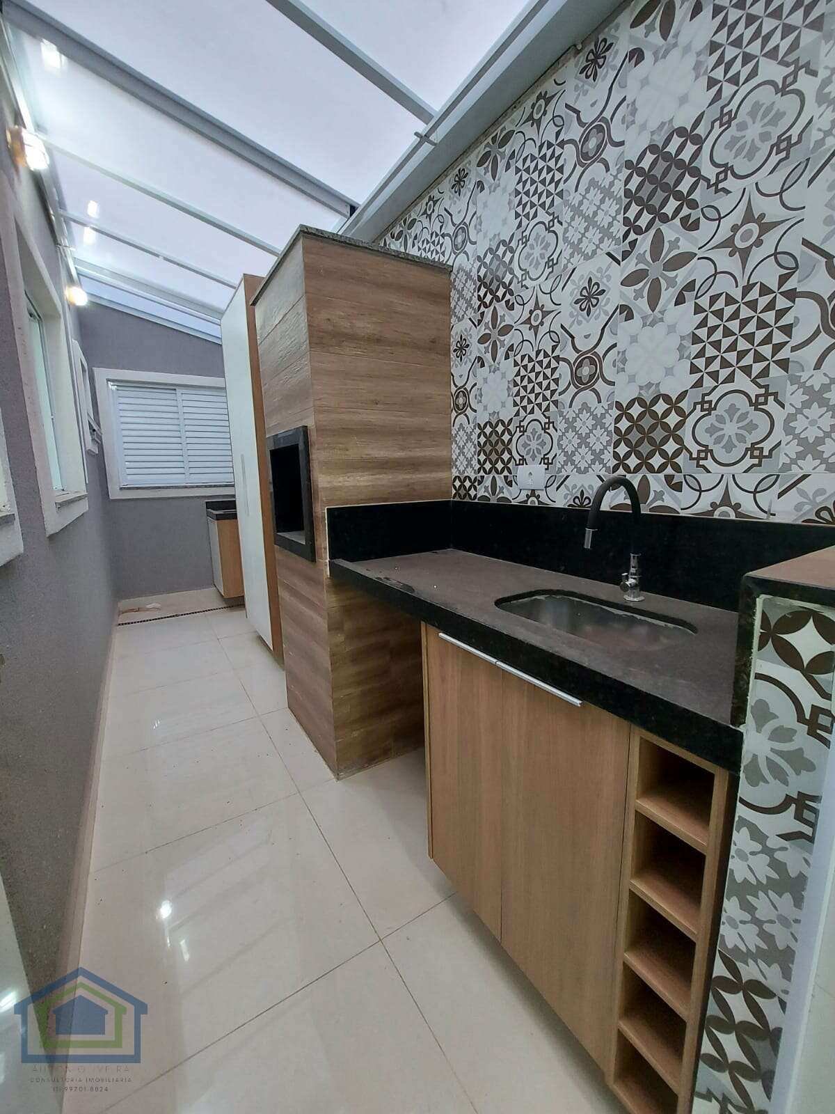 Cozinha com azulejo até o teto.
